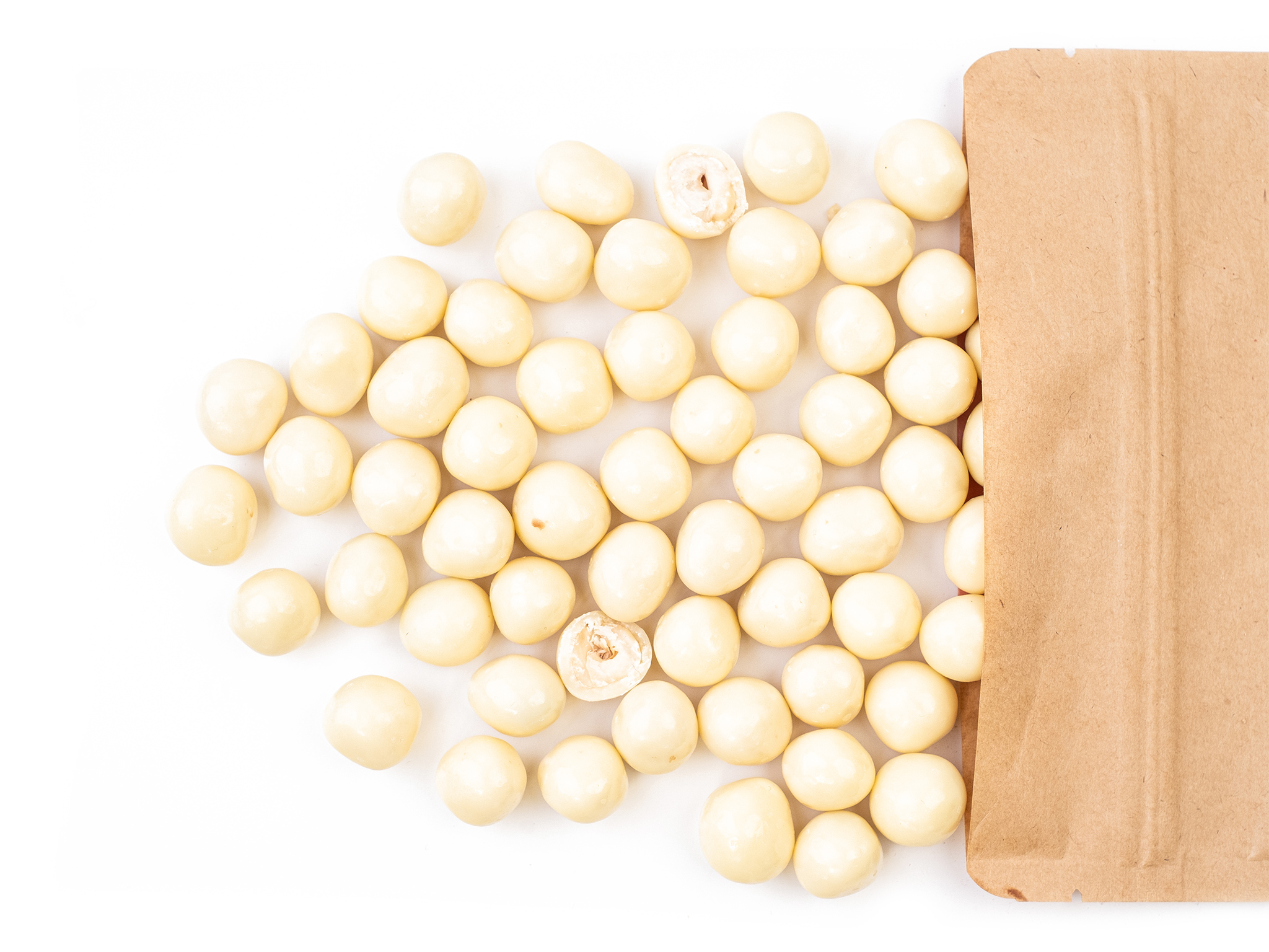 LÍSKOVÁ JÁDRA, cukr, rostlinný tuk (palmový), SYROVÁTKA, rýžová mouka, JOGURTOVÝ PRÁŠEK), slunečnicový lecitin, arabská guma, šelak E904, příchutě